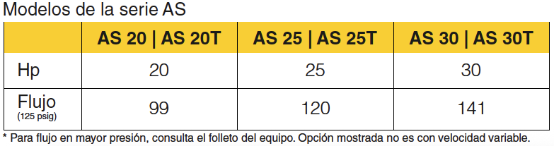 De una etapa, con inyección de aceite de enfriamiento para una refrigeración óptima de los rotores.